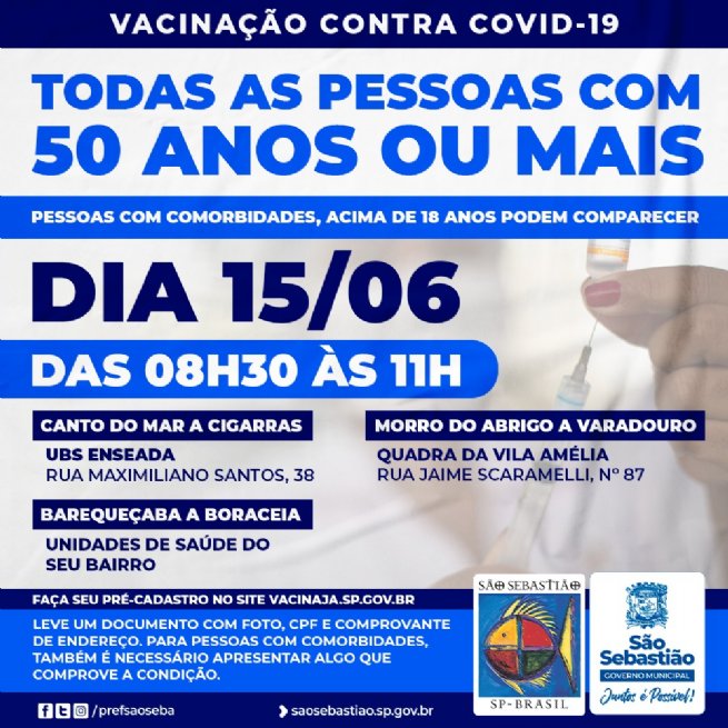 Campanha vacina população de 50 anos ou mais nesta terça-feira (15) em São Sebastião